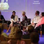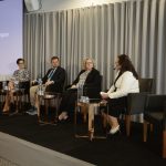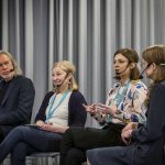 Kestävää kasvua vai kasvavaa kestävyysvajetta? Tätä pohtivat paneelikeskustelussa Anna Soraisen (keskellä) johdolla Tuuli Koivu (vas.), Mikko Spolander, Elina Pylkkänen ja Mikko Kautto.