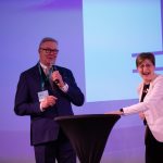 Valtiokonttorin pääjohtaja Timo Laitinen ja Tulevaisuuden hallinto -pääsalin moderaattori Anna Sorainen toivottivat antoisaa Valtio Expo -päivää.